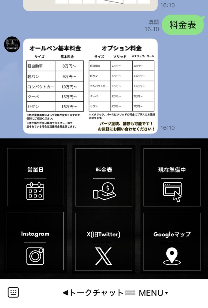お見積もりのご依頼やご質問は下の公式LINEより「友だち追加」ボタンからお気軽にお問い合わせください。塗装予定の色やお車のお写真を送っていただくとスムーズにご案内が可能です。